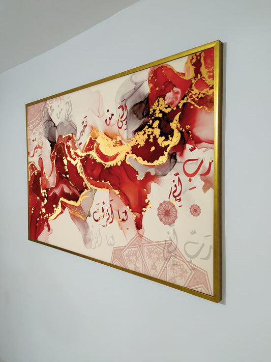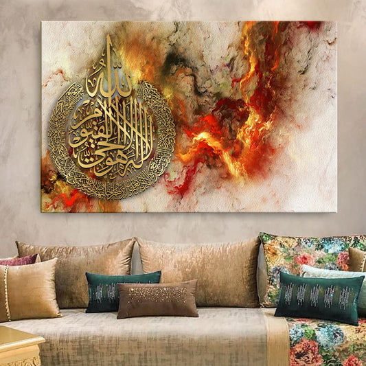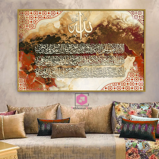 Calligraphie islamique ayat al kursi rouge doré